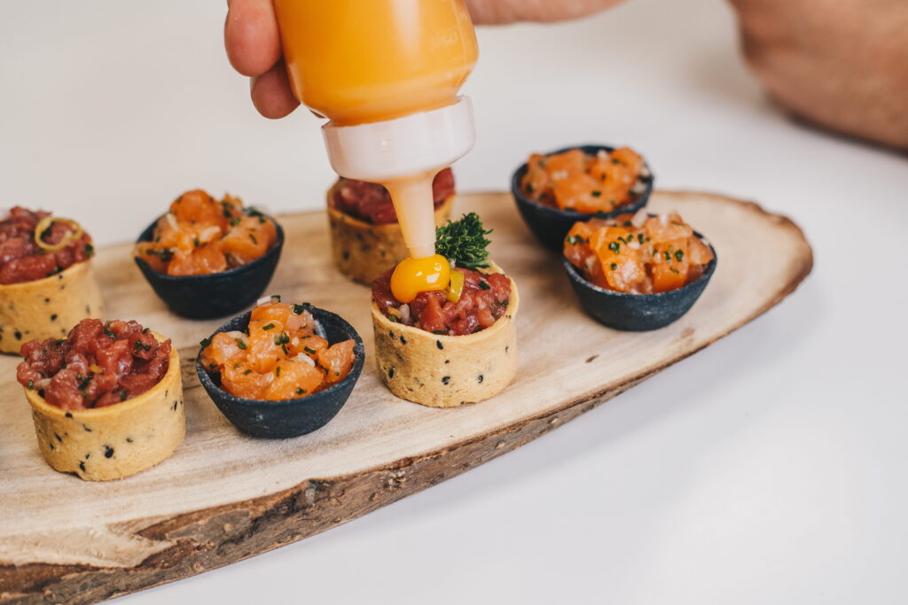 El complemento perfecto para elevar cualquier presentación. Nuestra salsa de yema de huevo está elaborada para uso profesional, lista para usar directamente en cocina sin preparación previa. Aporta cremosidad y un sabor característico que transforma aperitivos, tapas y platos principales. Ideal para acompañar las mini tortillas o como elemento diferenciador en la carta.