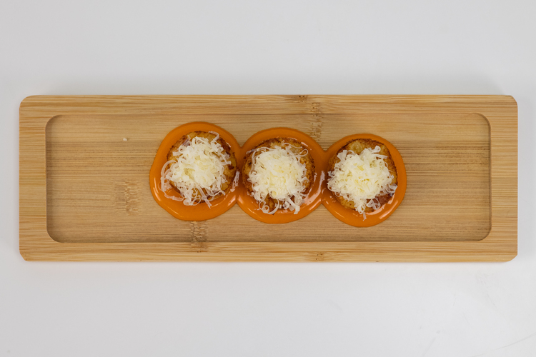 La mini tortilla de patata con chorizo deúna es una elaboración inspirada en la receta tradicional, preparada con patata, huevo pasteurizado, cebolla y chorizo, cuidadosamente integrados para ofrecer un sabor intenso y característico de la cocina española.